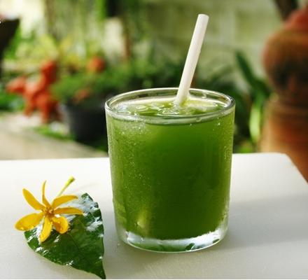 • นำใบบัวบกมาคั้นน้ำ โดยนำน้ำเปล่ามาผสม แล้วขยำให้น้ำออกก็จะได้น้ำใบบัวบกเข้มข้น